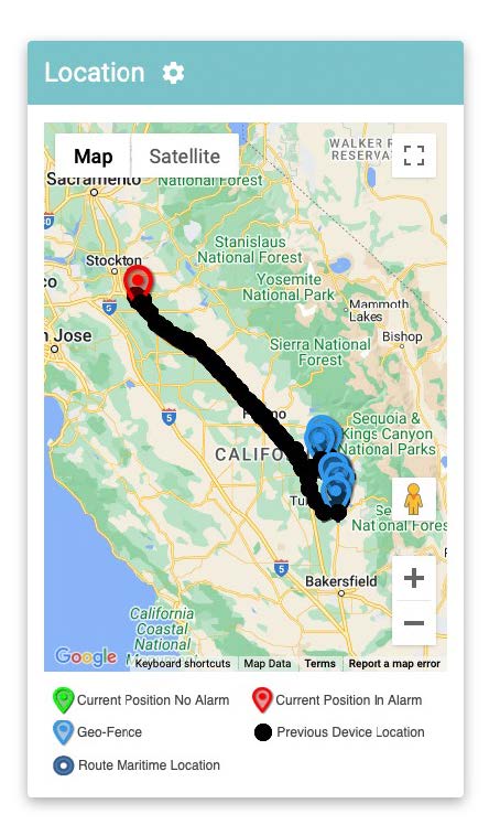 The traditional truck icon has been updated to a more universal pin icon, with color coding (Red for alarms, Green for normal status). Geo-fence icons are now displayed in Blue. An icon legend has been added to the Shipment and Route pages for easy interpretation of these icons. Additional Maritime icons have also been incorporated.