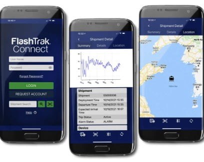 FlashTrak Connect works on mobile phones and tablets. Once shipment data has been retrieved, it can be easily forwarded to other stakeholders, by simply taking a screenshot and sending it via text or email.